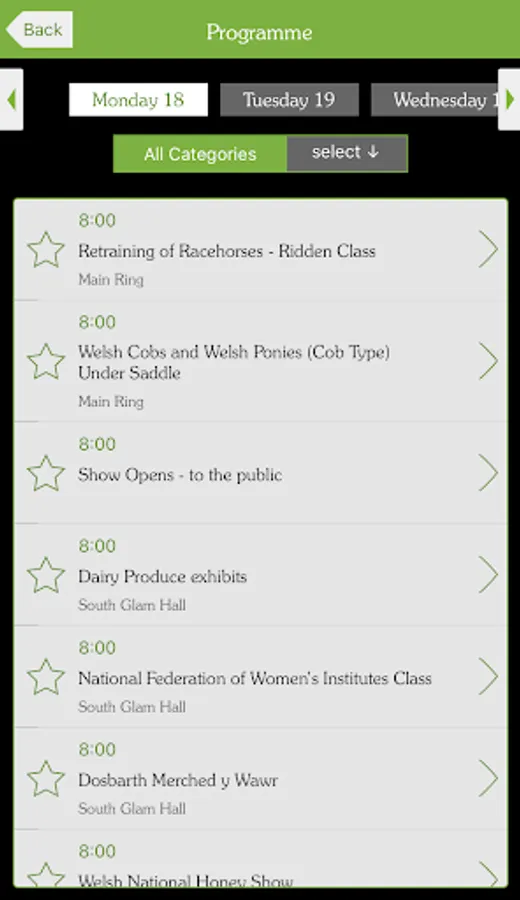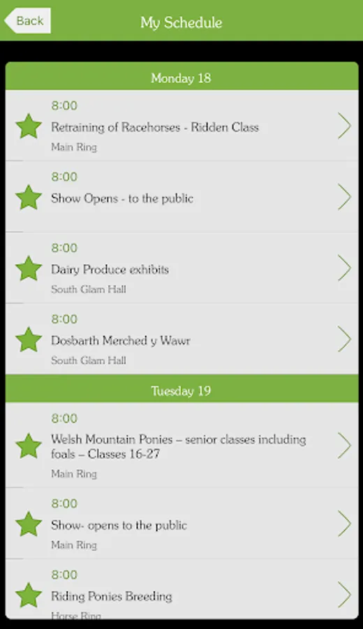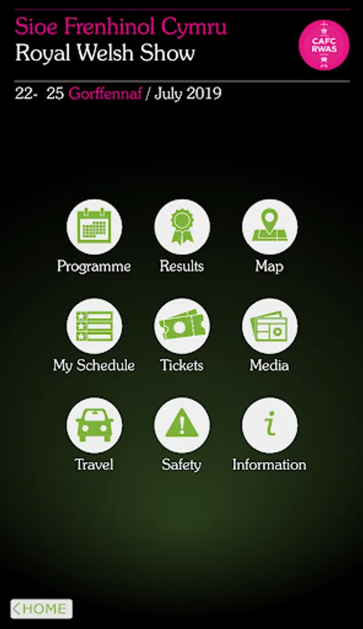 This is the Royal Welsh Agricultural Society's guide app. A description of its features are detailed below.