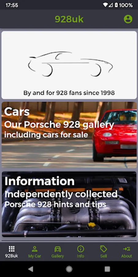 App users can opt-in to get notifications, for example when a 928 comes up for sale.