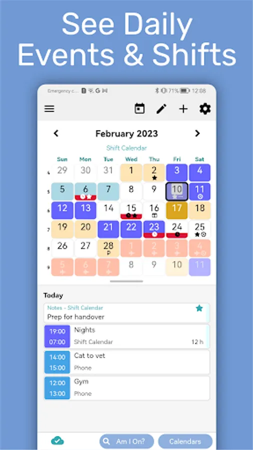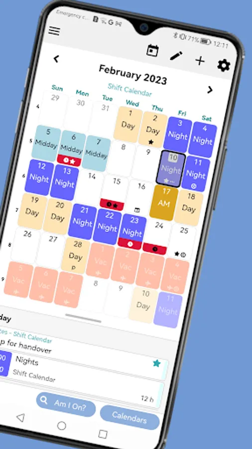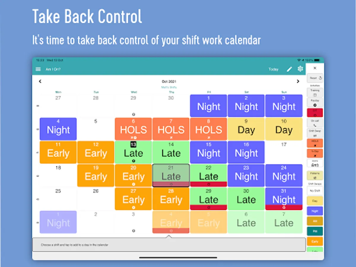 If you work shifts, you need MyShiftPlanner. Designed to organize your work calendar. See your shifts at a glance and take control of your shift work diary.