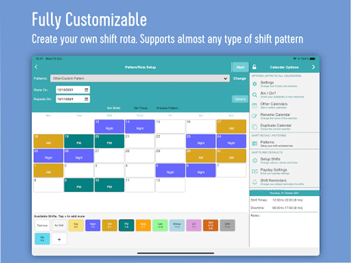 Powerful custom features that can handle almost any rotating shift work roster. 400,000+ shift workers around the world are enjoying our shift planning features.