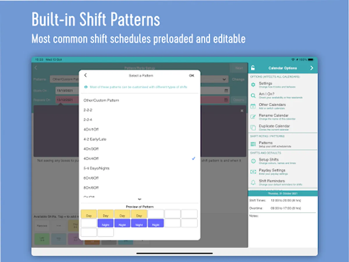 ⭐️ Multiple Patterns - add future rotas for when your shift schedules change