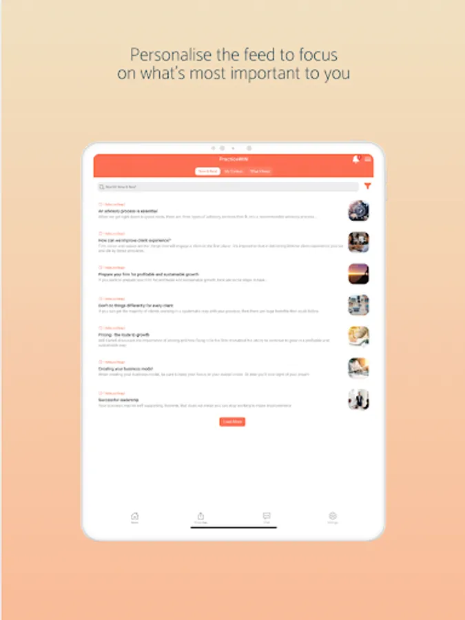 Hand-picked, proven industry experts in each of the key areas of running a Firm, provide educational and nurturing (not salesy!) content to help you focus on 'What I Need' and 'Now and Next' as well as the opportunity to personalise your feed on what matters most to you at any given time.