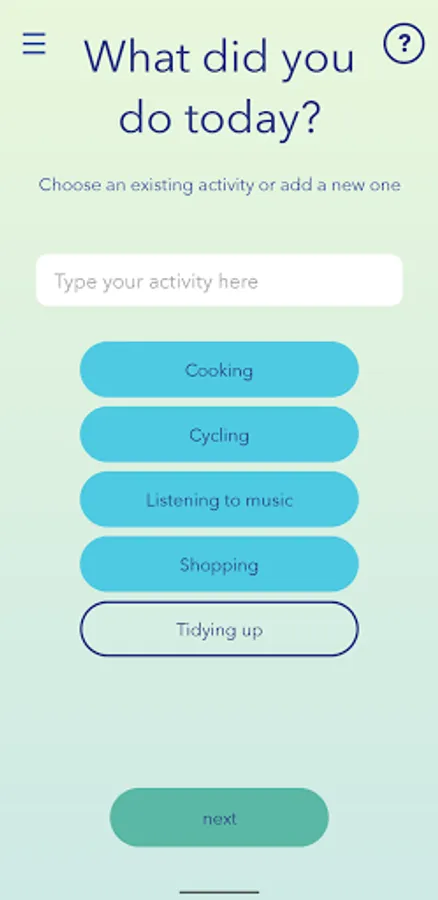 The app also has interactive CBT activities which you can use at any time. These draw upon well-established and clinically proven techniques and are designed to help you to recognise and overcome unhelpful patterns of thinking.