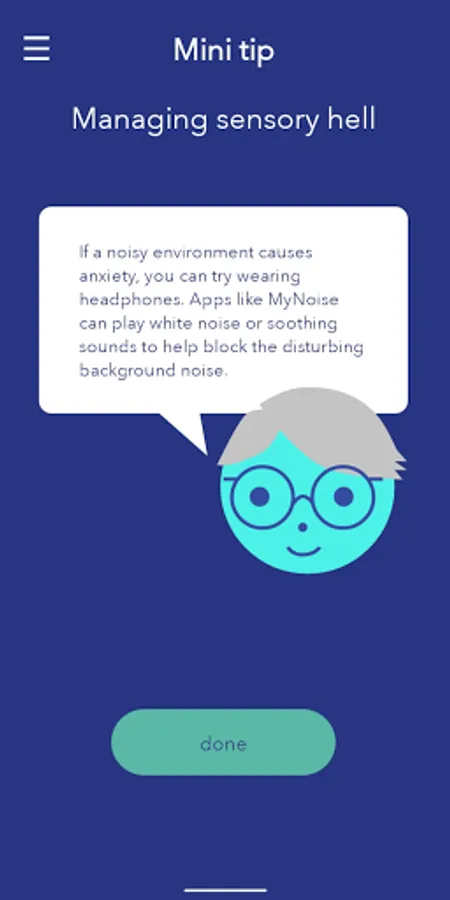 Over time, you unlock tips that will help you to understand your anxiety and learn ways to manage it. The daily tips have been completely rewritten for this new version of Molehill Mountain. In addition, we have added dozens of extra mini-tips to cover many of the common causes of anxiety and stress in autistic people, such as hypersensitivity to noise, light and touch or difficulties with social situations and communication.