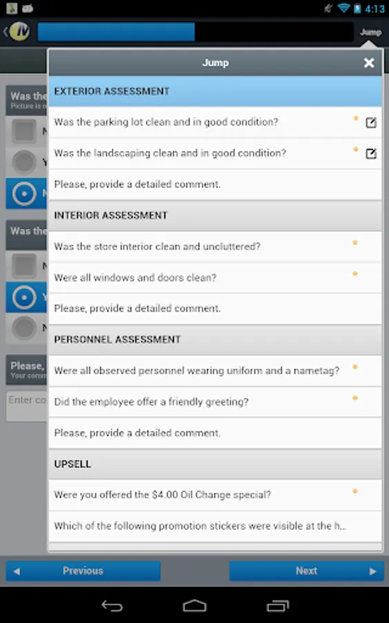 • Skip to any part of the assessment using ‘jump’ feature