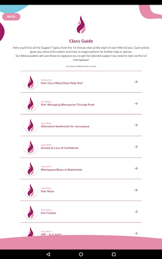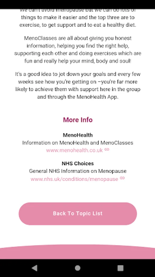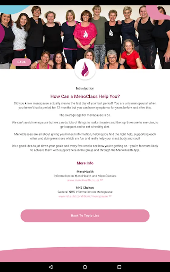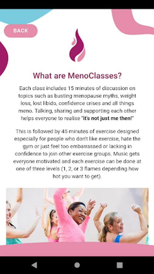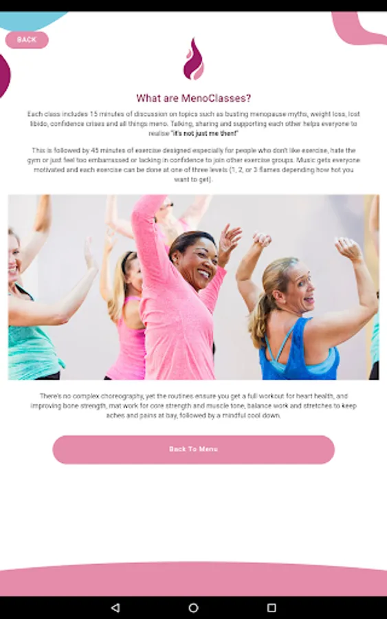 The MenoHealth app is easy to use and allows you to do all the things you need to do to take control of menopause. Want to be a MenoSister? It only takes a few clicks to book yourself in to a MenoClass near you!