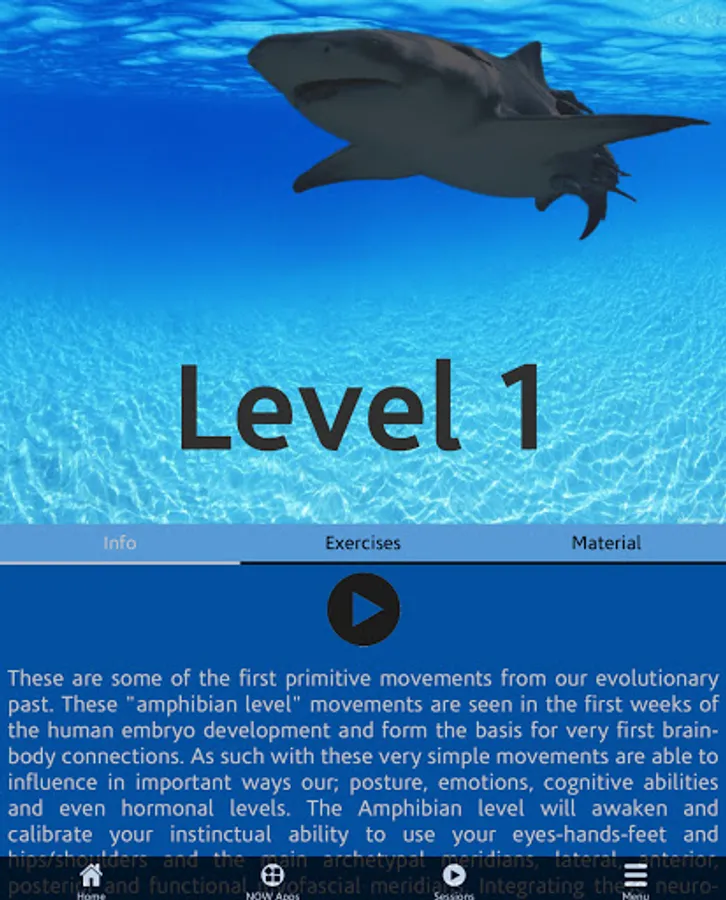 Level 1 - Amphibian - Reinforces proper coordination of the myofascial lateral line and is effective in clearing up many diverse back & neck pain problems and helps calm deep fear, depression and anxiety.