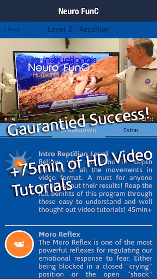 Following the evolutionary timeline, Neuro FunC’s proprietary full body movements begin with simple vertebrates, incorporating more elegant advanced movements as you master each level.