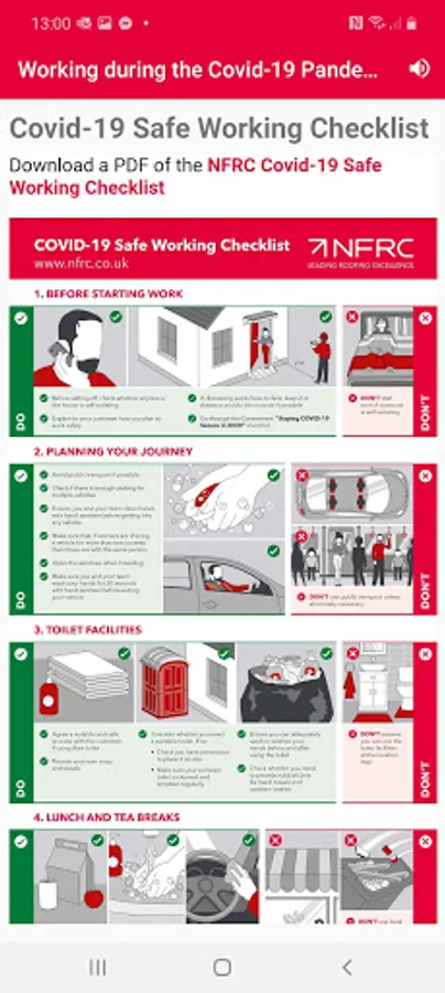 An app for all a roofer’s heath and safety needs while on-site. The NFRC app contains a wealth of information about how to work safely on-site as a roofer. It gives a helpful summary of the things roofers must always be consider an essential part of all site working. The app covers everything from the Health and Safety at Work Act, to CDM 2015 to the Control of Noise at Work Regulations. The app also contains useful features for employers such as advice on a written ‘company safety policy’ along with appropriate method statements and risk assessments, and provision of adequate welfare facilities.