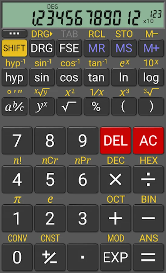 RealCalc Plus is designed to look and operate exactly like a real hand-held calculator. It has all the standard scientific functions plus fractions, degrees/minutes/seconds, history, memories, customizable unit conversions and constants. You can choose from a number of display styles and formats. It also supports binary, octal and hexadecimal calculations and has an optional RPN mode. RealCalc Plus is easy to use, but has full help included in the app.