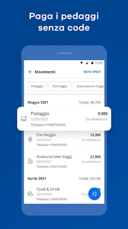 Telepass is no longer just a queue-free motorway toll: the first major app dedicated to the world of mobility, from refueling to the rental of electric bikes and scooters to the purchase of train tickets. All without cash and in a safe, simple and fast way. Mobility has a new name, keeping up with your life.