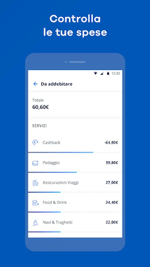 • Pay everything in the App with direct debit to your current account.