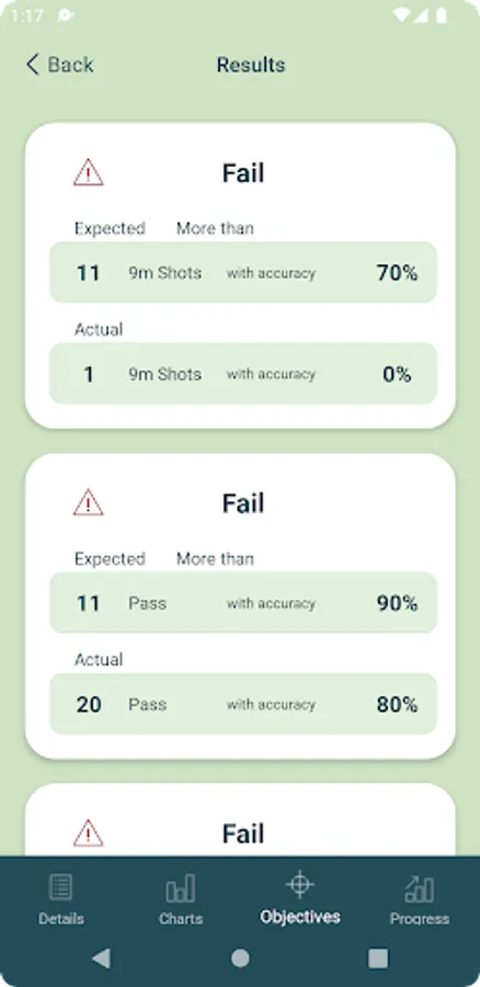 Compare results from previous sessions to track your progress