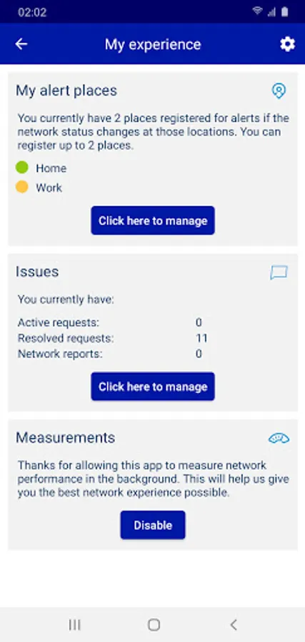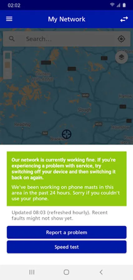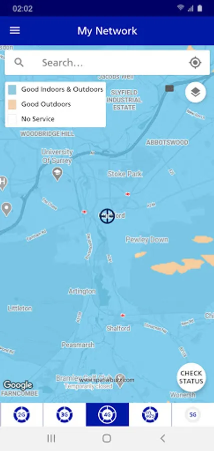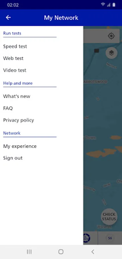 • Check the network status in your location, by tapping the ‘Check’ button on the map.