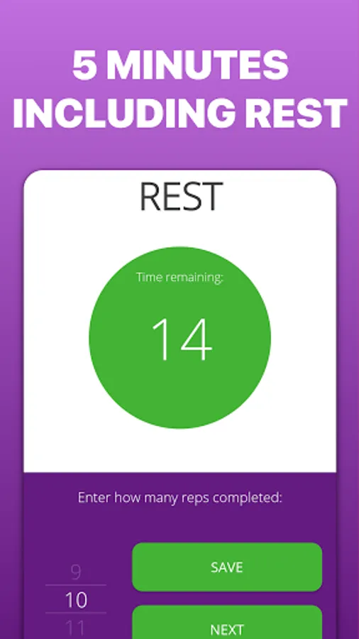 Stay on track: All workout sessions have timed rest and exercise periods to ensure fast sessions that take no more than 5 minutes - even the busiest people should be able to find 5 minutes to exercise!