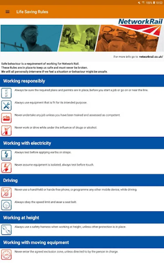 This app receives Safe Work Packs from the On-Trac desktop SWP application and allows the PIC to view, edit, manage and electronically sign packs on your device using the forms and processes described in the NEW Network Rail 019 Version 9 standard. The app can be used on or off line.