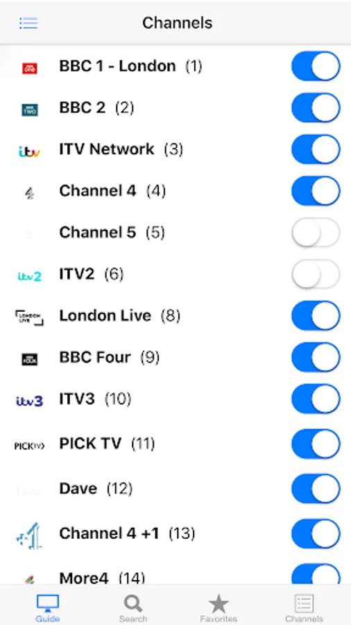 You can browse the guide of every channel, including Free TV, Sky TV and Virgin. If a TV channel is not often watched, it can be removed from the guide and put back on if desired.