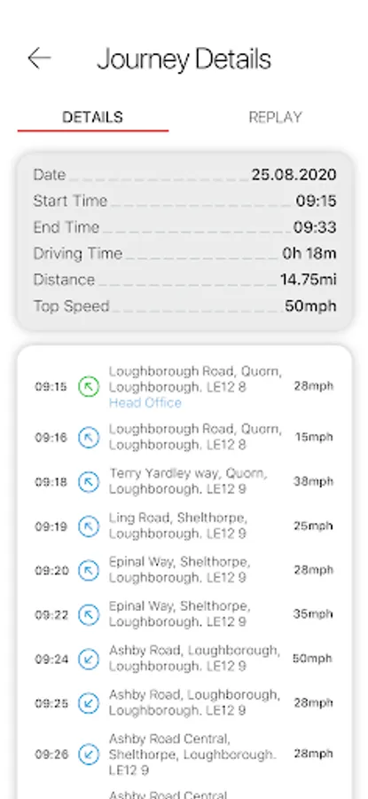 • Journey Replay: Replay the journey plotted on the map (Snail Trail); and