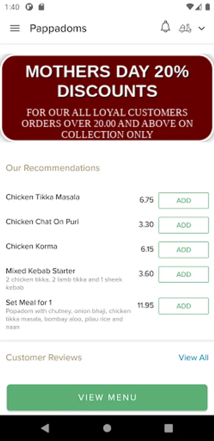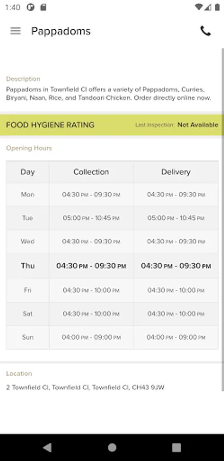 Order food online in Townfield Cl! It's so easy to use, fast and convenient. Try our new, online app which contains our entire takeaway menu. The PAPPADOMS is located in Townfield Cl.