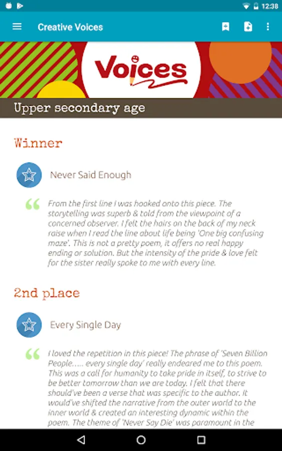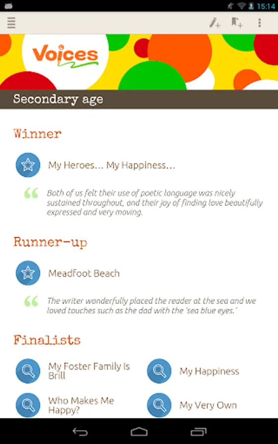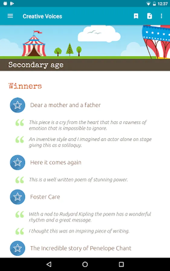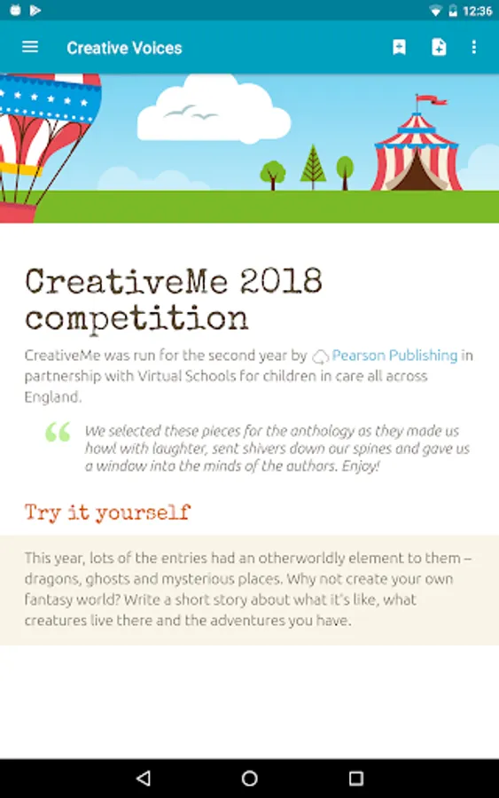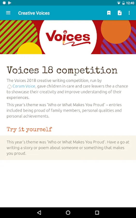 This anthology combines creative writing by children and young people in and from care collated through the writing competitions Voices and CreativeMe. Voices is run by the national charity Coram Voice and aims to give children in care and care leavers the a chance to showcase their creativity and improve understanding of their experiences. CreativeMe is run by educational publisher Pearson Publishing in partnership with virtual schools for looked after children and aims to inspire children in care to try out imaginative writing.