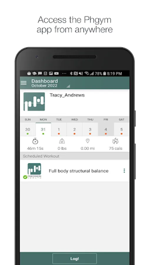 Log your Precision Health workouts from anywhere with the Precision Health workout logging app! View your logged workouts, see upcoming scheduled workouts, and book appointments inside the app. Track your progress and get the most out of your Precision Health workouts!