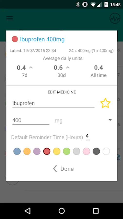 You can choose to set reminders, either by date and time or in so many hours’ time. You can also create a widget that records the medicine and dosage with a single touch.