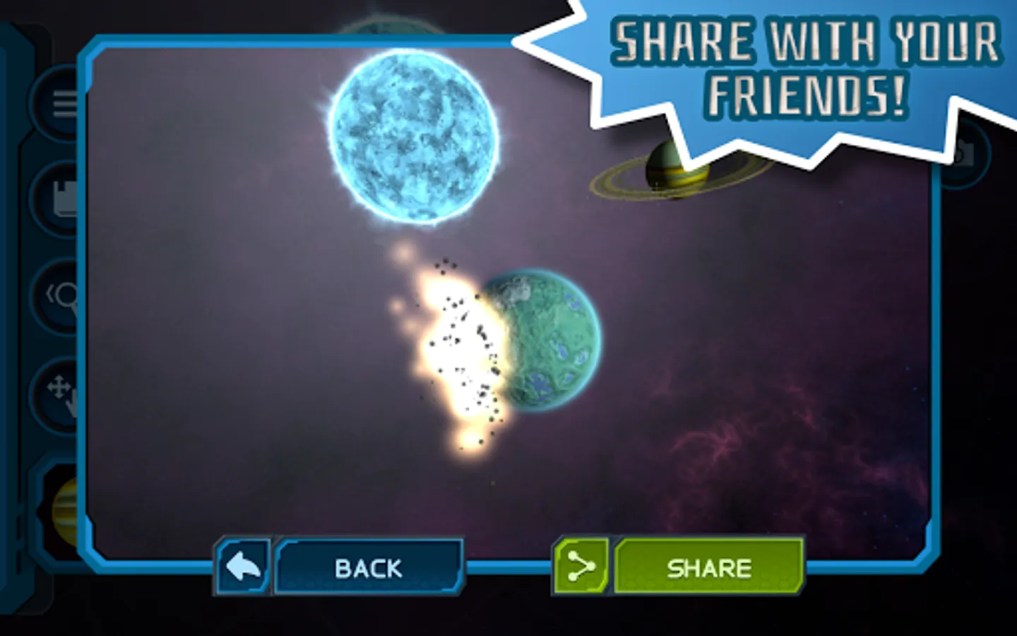 With endless variations of planets, stars ,and more; you’ll never run out of creative options. Smash planets together and affect planet conditions to unlock new types. Explore how life develops in your solar system through the planet journal.