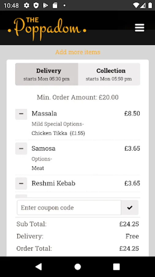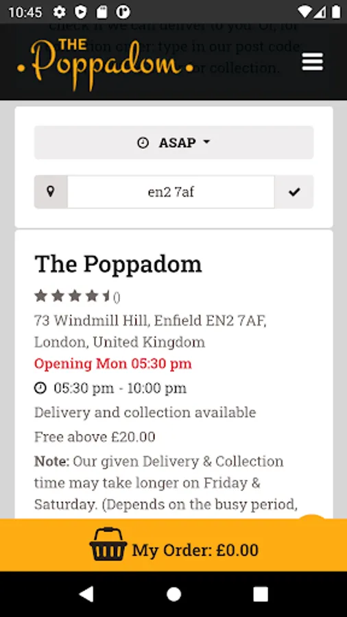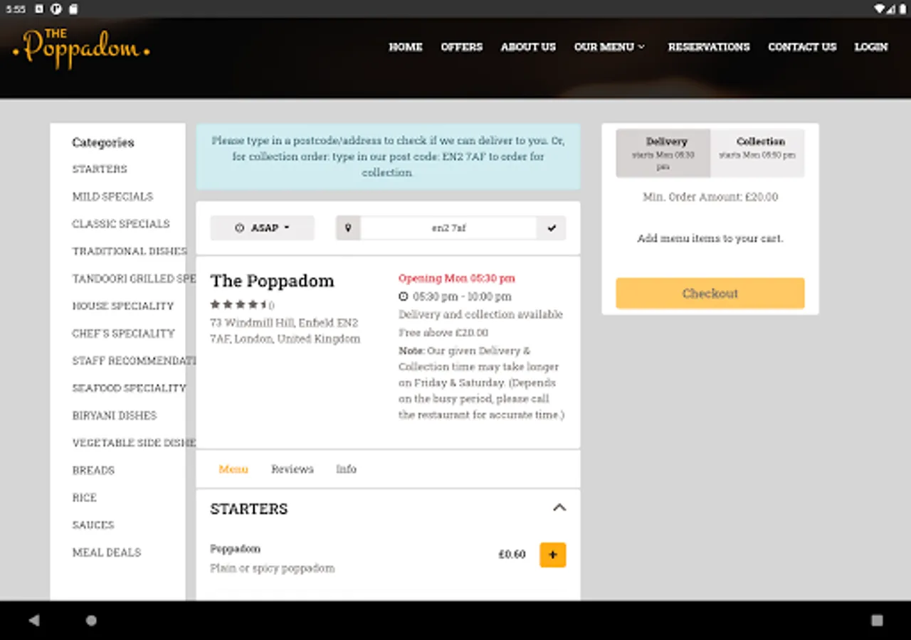 The Poppadom situated at 73 Windmill Hill, Enfield, London, EN2, UK. We are offering best of best with latest offers and more. Download our app to order your desired food quickly and easily.