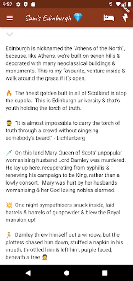 Hi, I'm Sam a sometimes tour guide & this is my app showcasing some of my favourite activities in Edinburgh.