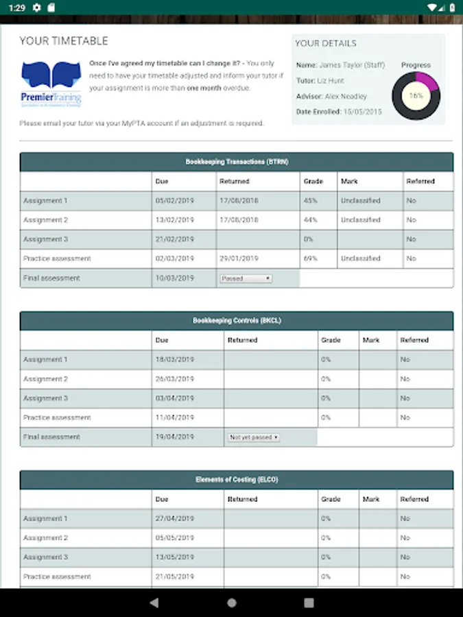 Free for Premier Training Students - MYPTA (My Premier Training Account) is an innovation in distance learning, reinventing the methods in which students can learn accountancy and bookkeeping effectively. MyPTA is like having a personal tutor, a library and a classroom all in your pocket. It enables you to access learning at any time and in any location 24 hours a day whenever you need to study!