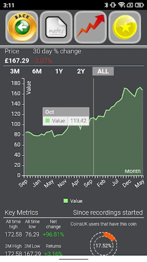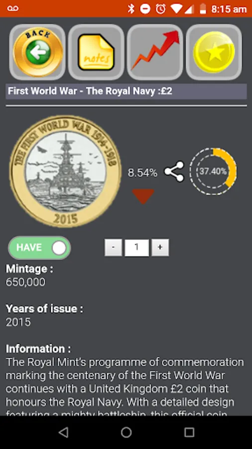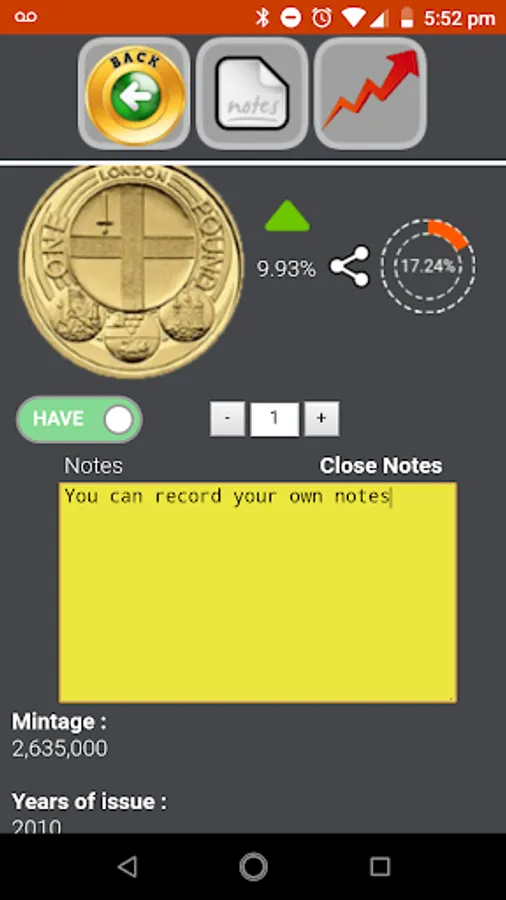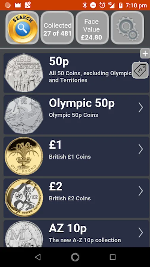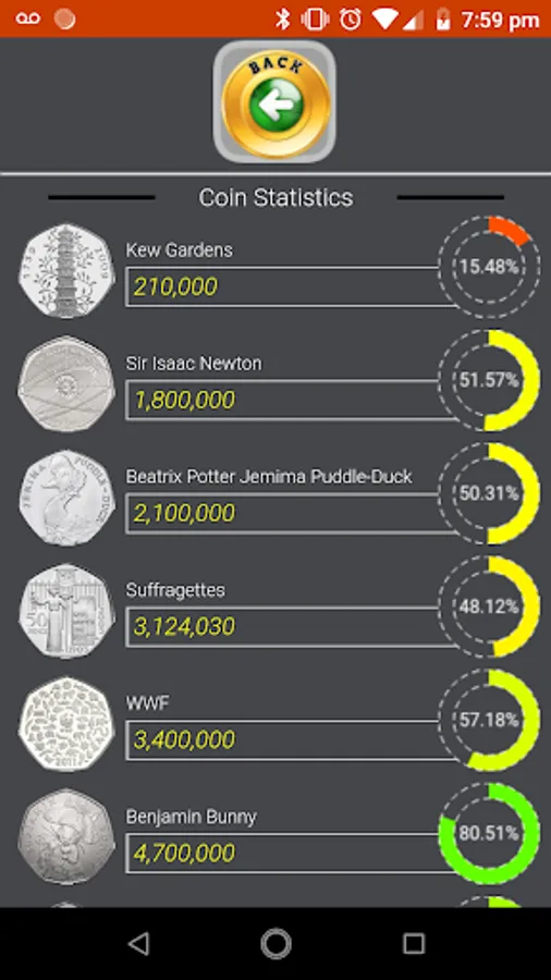 > Live Collections allowing users to see the actual percentage of coins collected by users of the application (available as part of Live Prices In-app purchase)