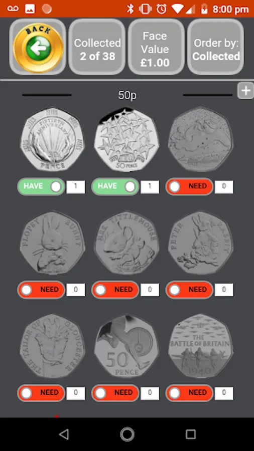 This application assists UK coin collectors by keeping a checklist and quantity of each 1p, 2p, 5p, 10p, 20p 50p, £1 and £2 coins.
