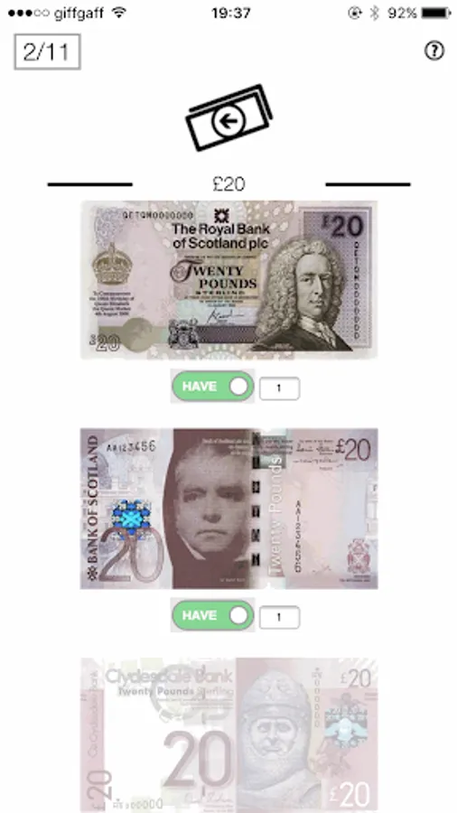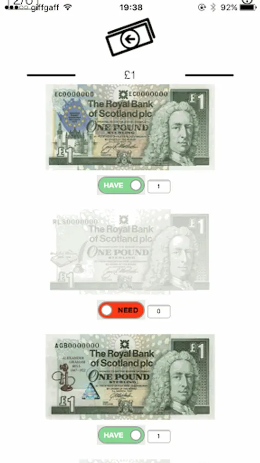 UK Notes collection App for £1, £5, £10, £50 and £100 notes.