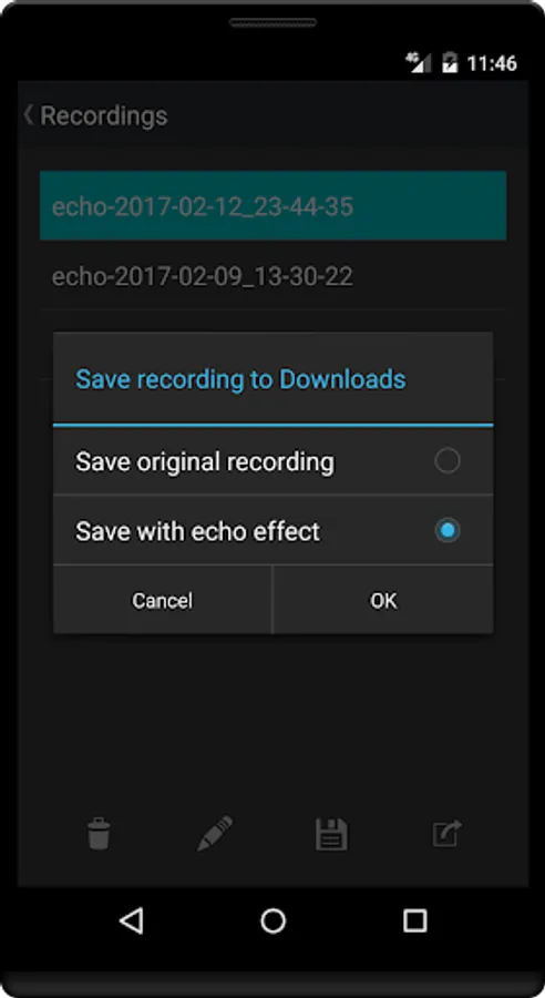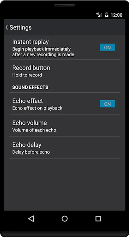 Echo is a simple audio recorder with instant playback. Now with optional echo voice effect. To make a recording just hold the record button, release it and hear it played back.