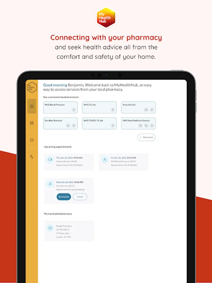 MyHealthHub is an NHS integrated app. Link to your GP and your community pharmacy to manage your whole family’s prescription, and consultation needs conveniently and effortlessly.