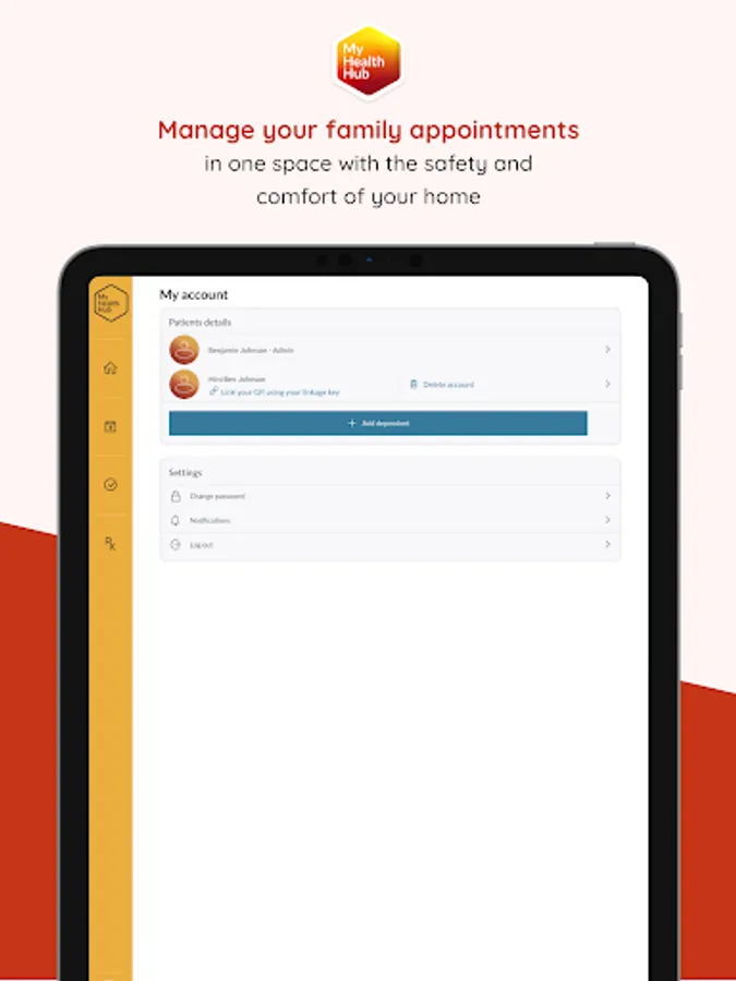 • You can add your loved ones and manage their Consultations and repeat prescriptions.