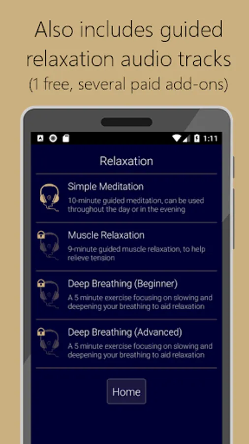 -Relaxation resources: 4 relaxation audios including simple mindfulness meditation, deep breathing and muscle relaxation