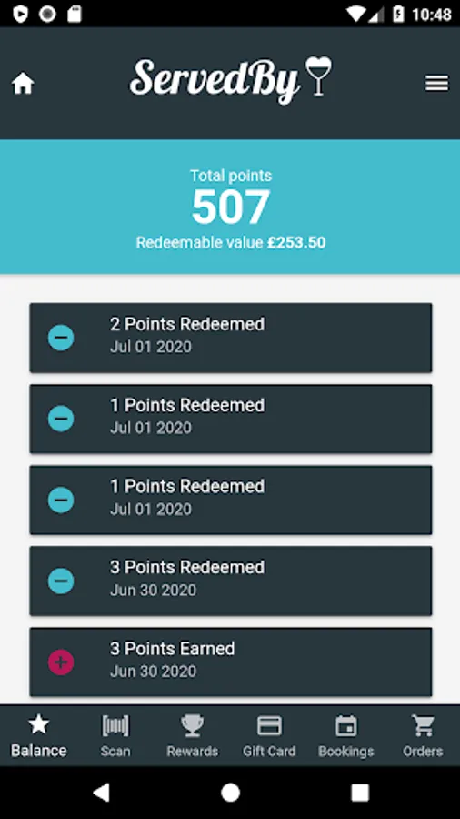Redeeming your reward points and your gift card balance is easy! Just have the server scan the code on the app when paying for your meal.
