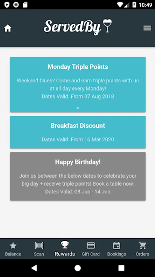 If you have any trouble downloading or logging into your app, please contact the restaurant or provider of your membership/gift card.