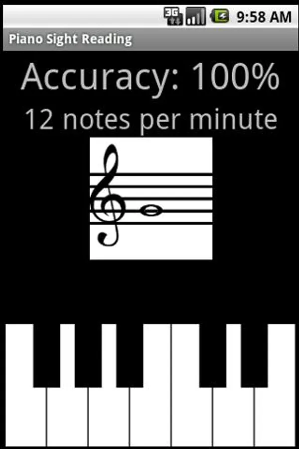 Practice mode gives you a stave and a single octave piano keyboard. Notes are displayed in a random order and you have to play the correct key as quickly as possible. Mistakes are highlighted in red until you press the correct key. A continuous score for speed and accuracy is displayed.
