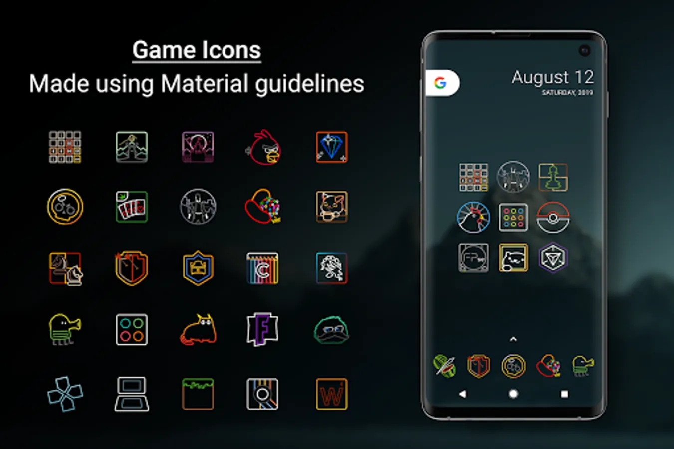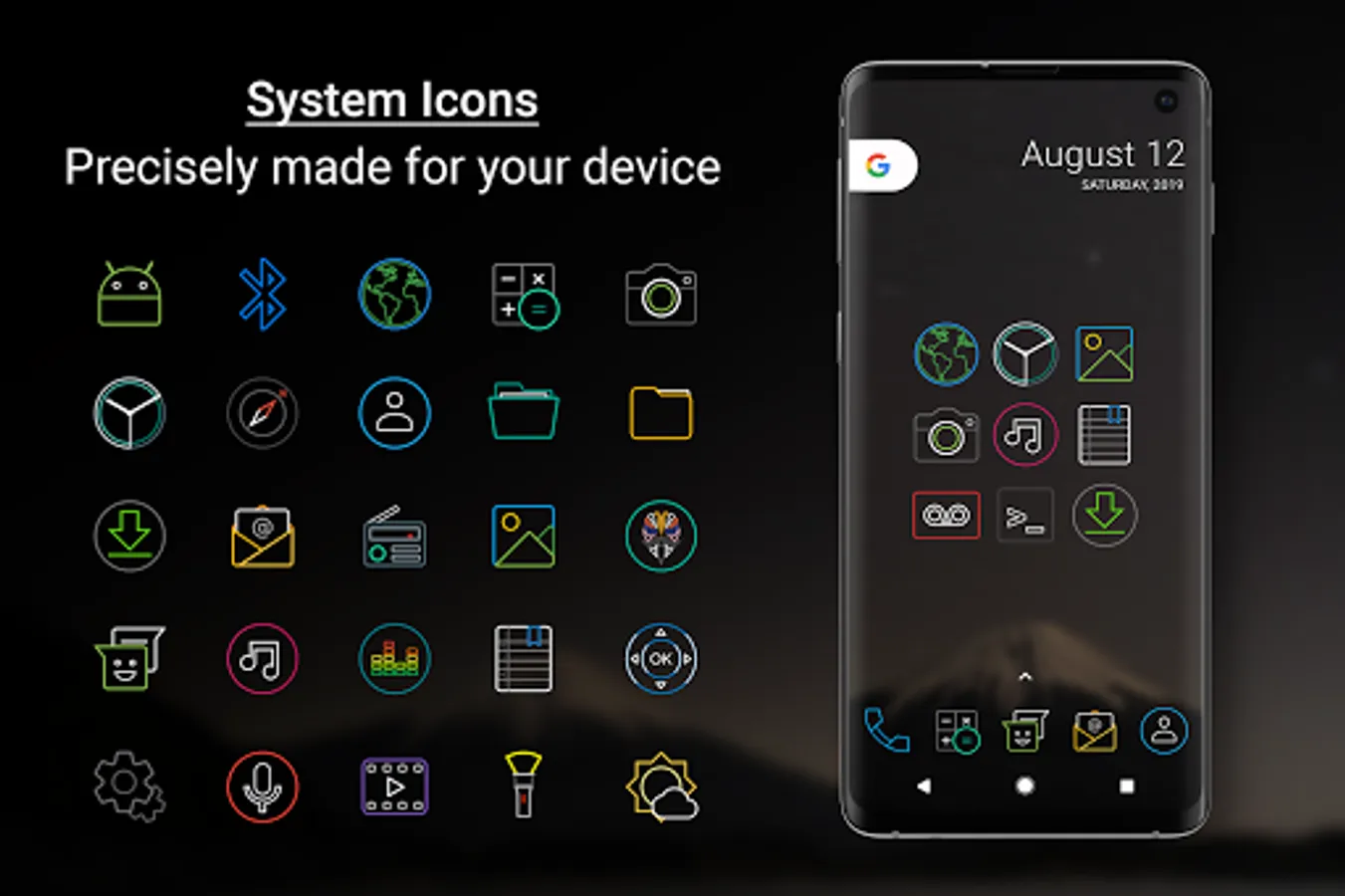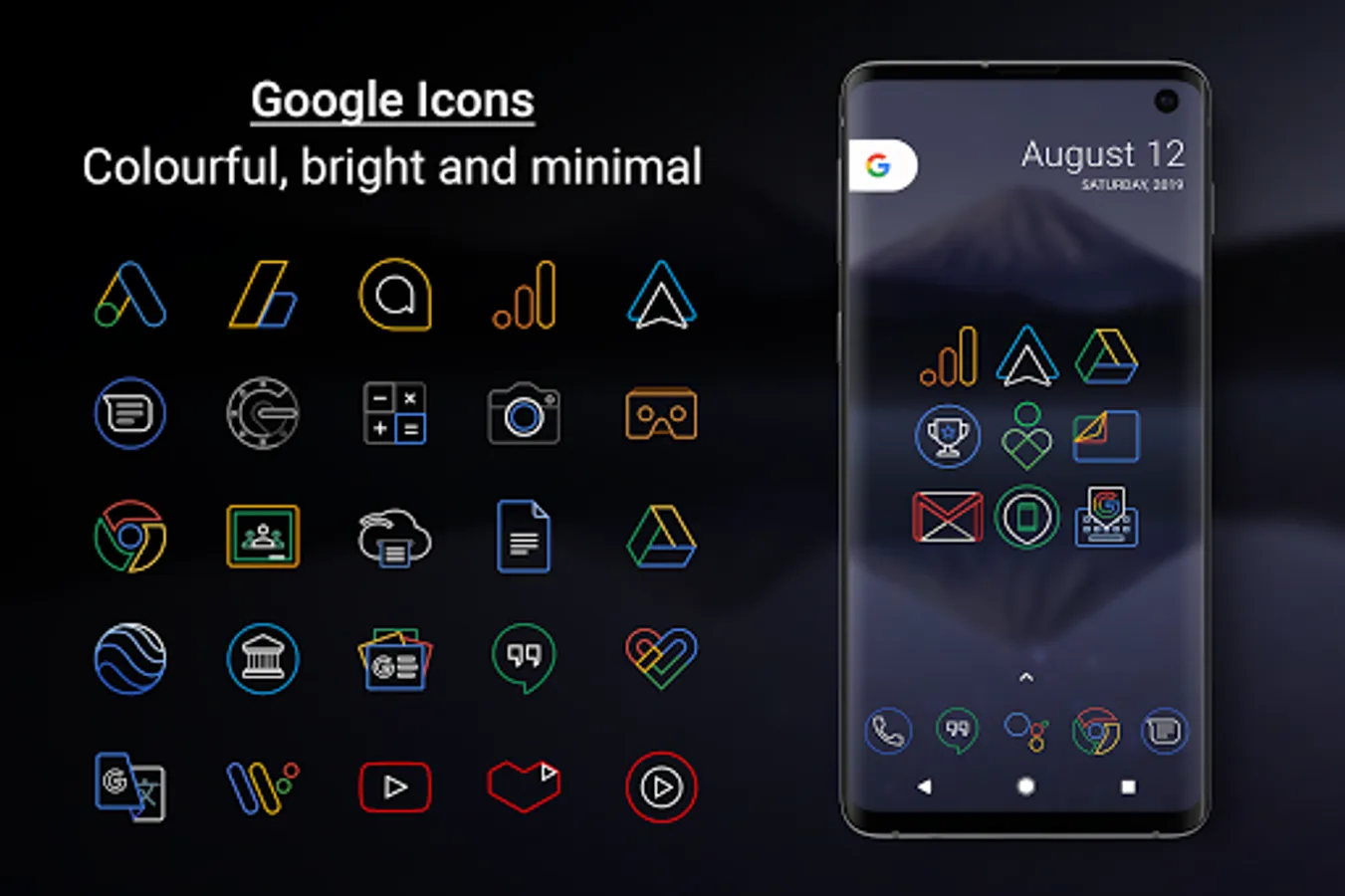 • Clean, colorful, minimal icons that look great on dark or blurred wallpapers (AMOLED friendly)