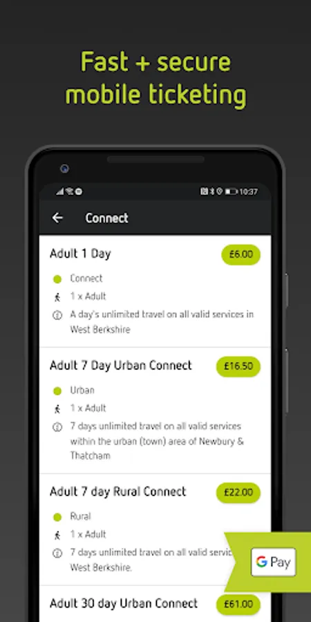 Mobile Tickets Purchase mobile tickets securely with a debit/credit card and scan when boarding - no more searching for cash!