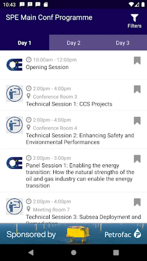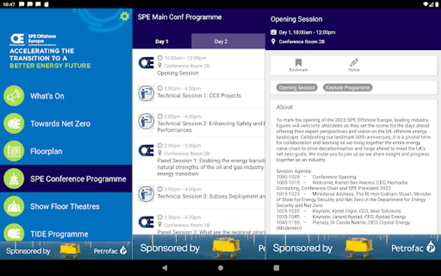 • Conference programme listing and ability to favourite sessions and create your own agenda