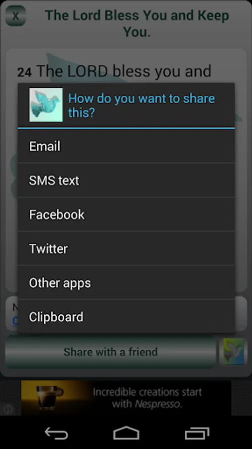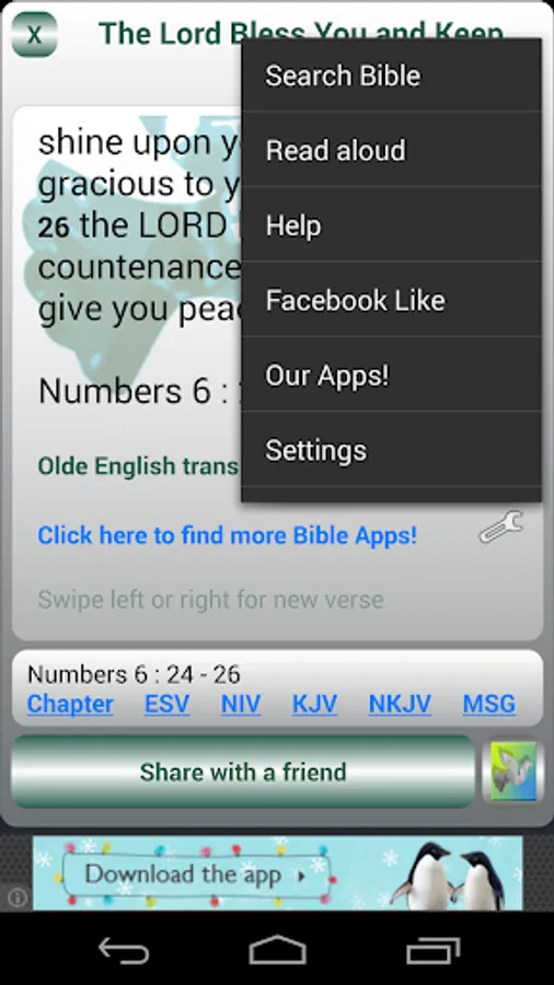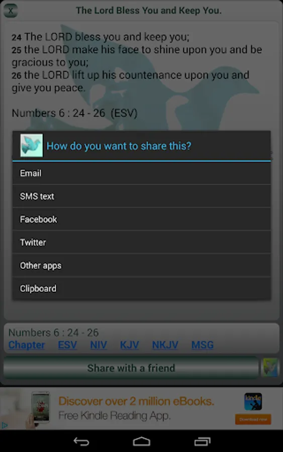The app also allows you to share the scripture with friends via email, text message and popular social media sites.