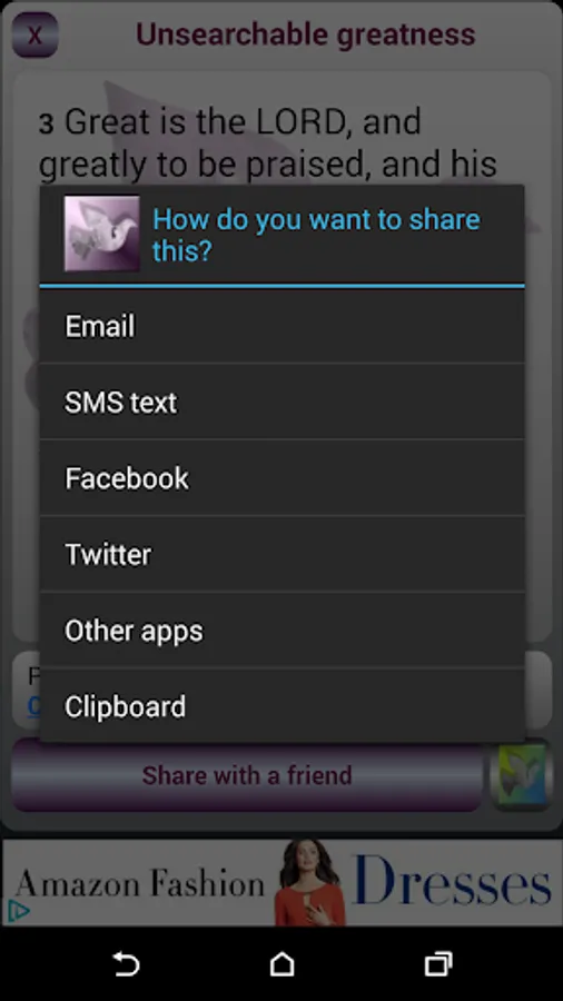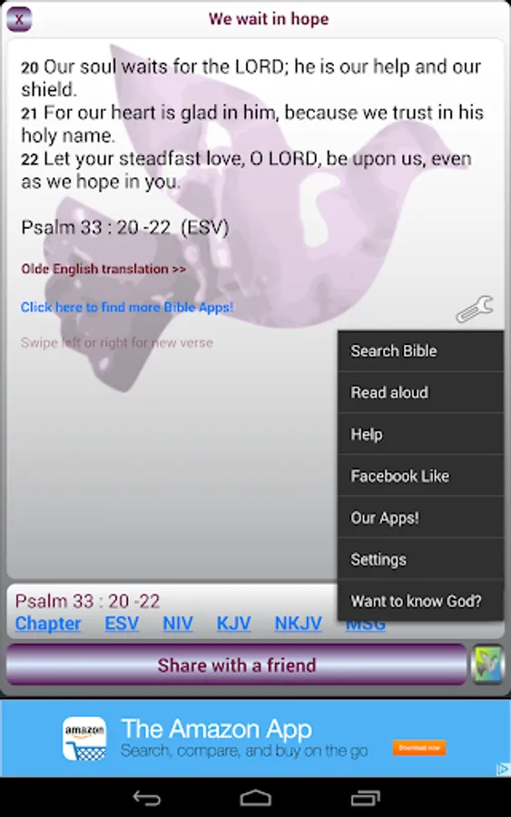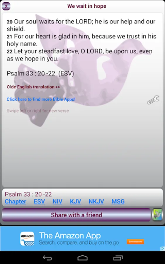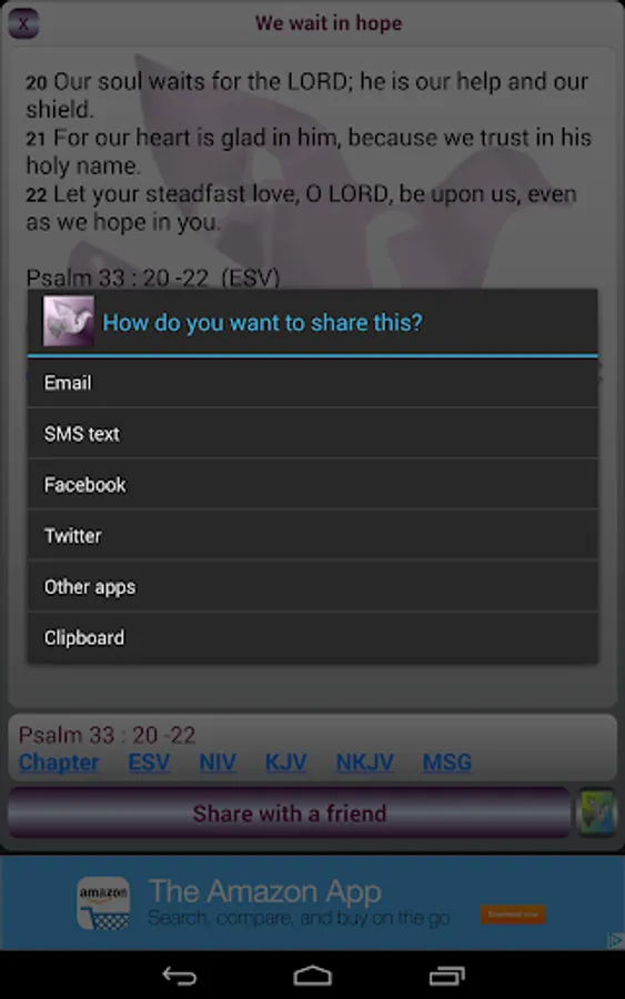 The app also allows you to share the scripture with friends via email, text message and popular social media sites.