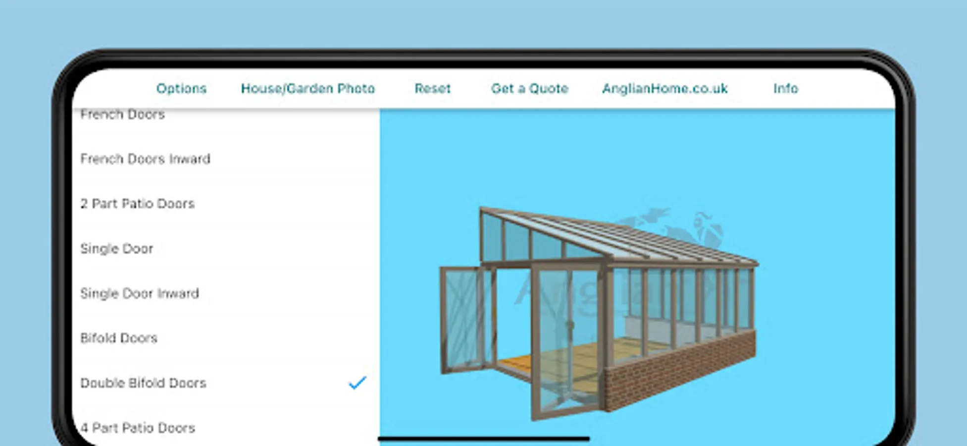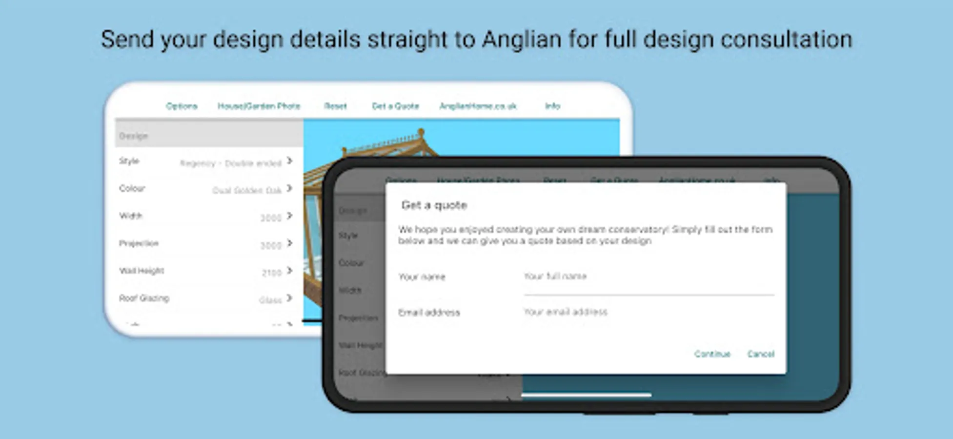 · Select one of Anglian’s conservatory styles, colours, glass and roofing options