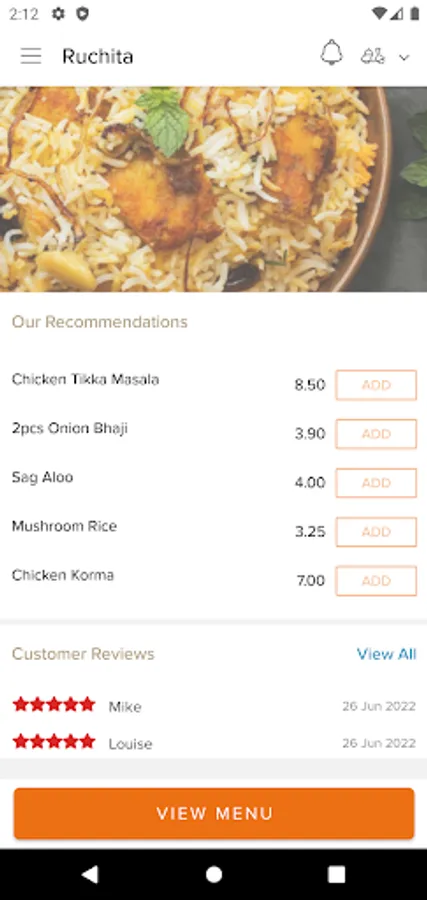 Ruchita serves classic Indian dishes as well as a selection of modern additions for those who fancy something a little different. We also stock a wide range of wines and beers.Service and cleanliness is second to none and all dishes are customisable to your personal preference. Here at Ruchita we concentrate on high standards, using the best quality ingredients and providing a fast efficient service. Ruchita attracts families, couples and business men and women, making all feel welcome.