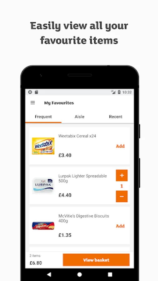 • Add and remove up to 25 items from your basket at the tap of a button