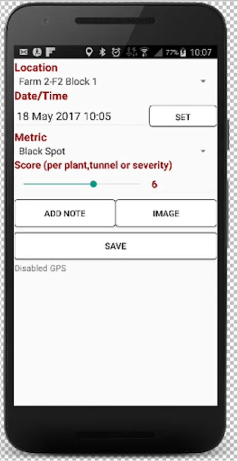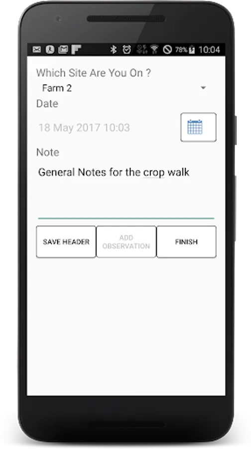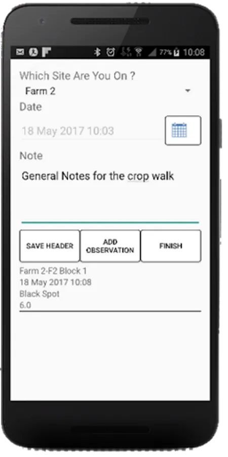 Conduct detailed crop surveys using GPS tagging, Photo's * to score predefined metrics observed in the field. The data is uploaded to a central server to create detailed crop walk reports.