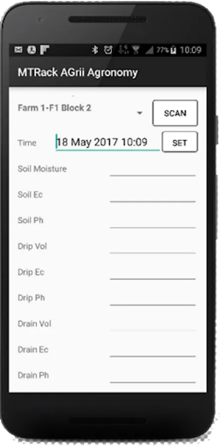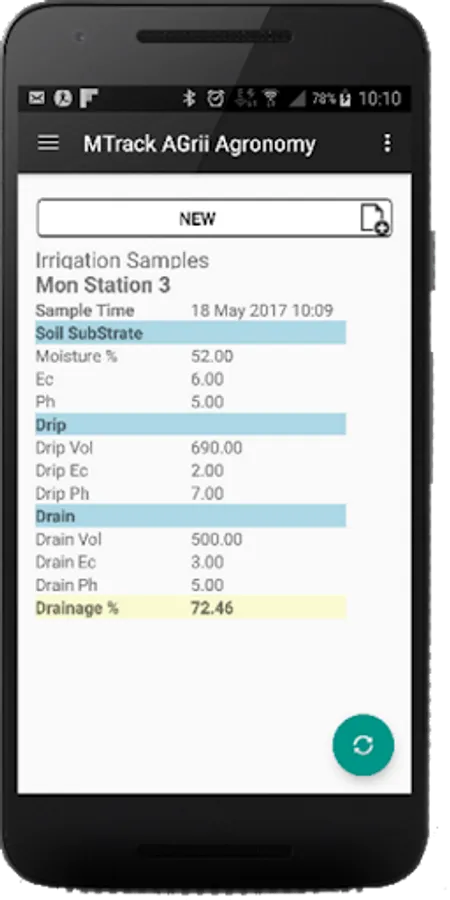 Monitor Irrigation performance (Hydroponics), by capturing Volume, pH/Ec and moisture readings at predefined monitoring stations.